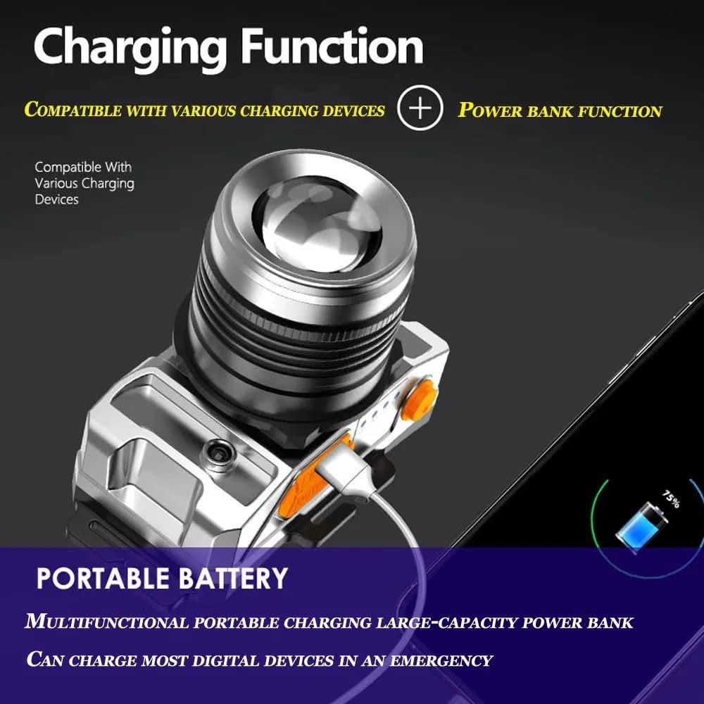 Care 4 Portable LED Headlight USB Rechargeable Super Bright Sensor Headlight Miner Headlamp Outdoor Waterproof Flashlight