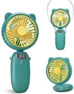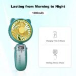 ECOSKY CUTE CAT EAR FAN WITH DISPLAY,HANGING BAND AND USB CHARGER Hand Fan, USB Rechargeable,Pocket Fan Portable with 4Speed,LED Screen, Foldable USB Fan (green)
